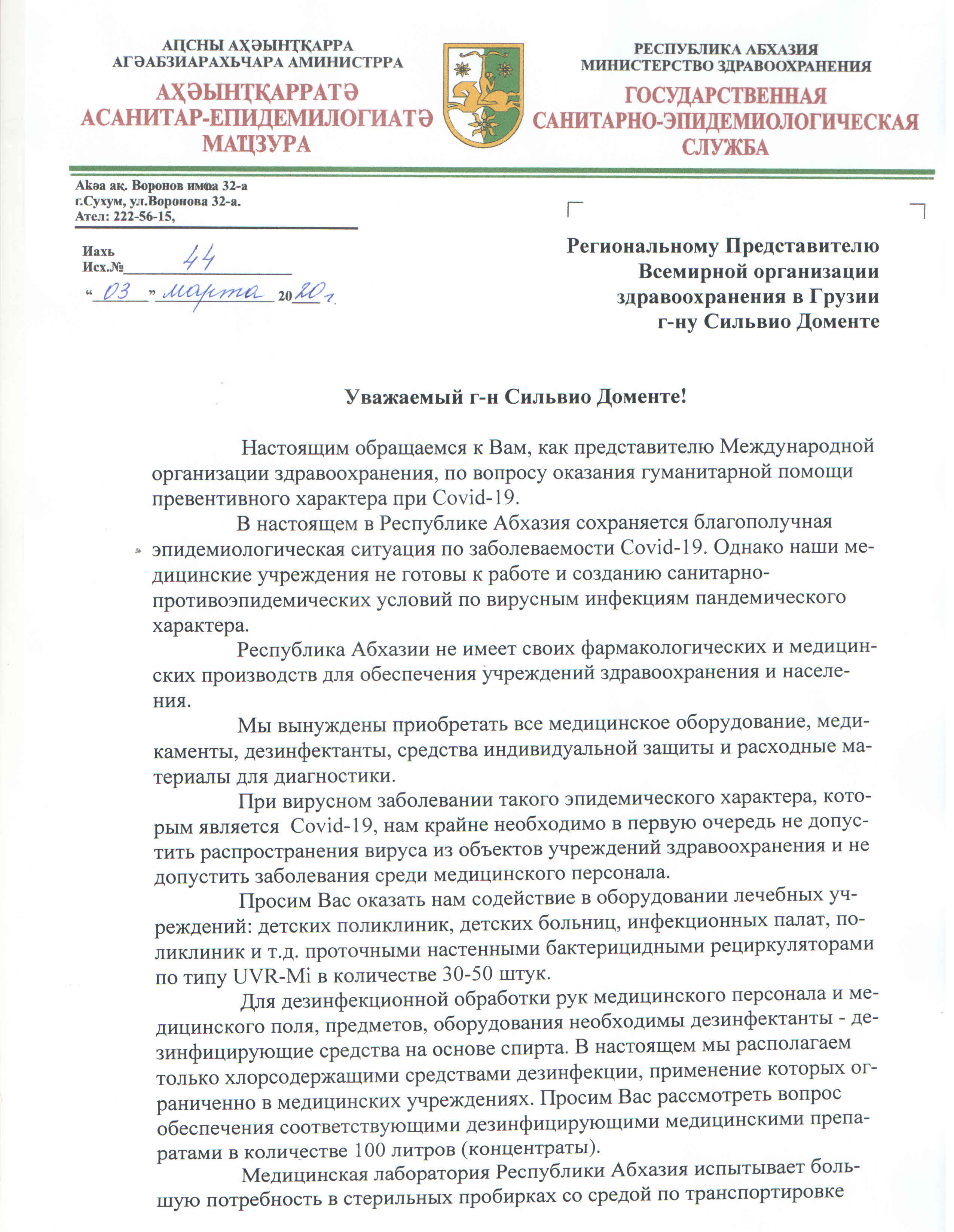 I received yesterday a request for support related to COVID-19 from Abkhazia.