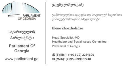 To : Elene Zhorzholadze <ezhorzholadze@parliament.ge>