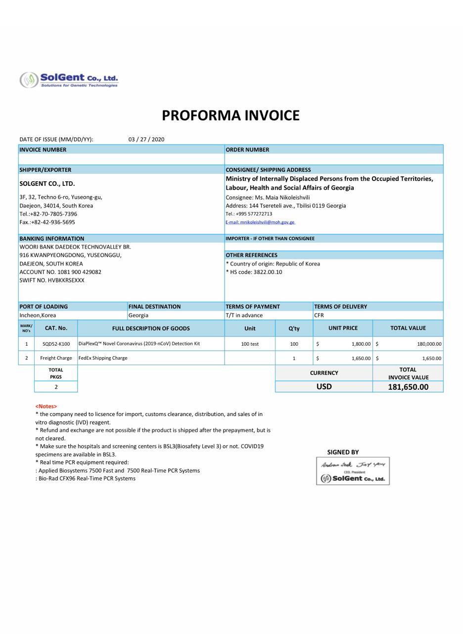 კორეაში არის მხოლოდ ერთი ავტორიზებული კომპანია SD Biosensor, რომელიც აწარმოებს ხსენებულ ტესტებს, დღეში მხოლოდ 100 000 ერთეული. ჩვენთან ერთად 54 ქვეყანა ატარებს მოლაპარაკებას აღნიშნულ კომპანიასთან.