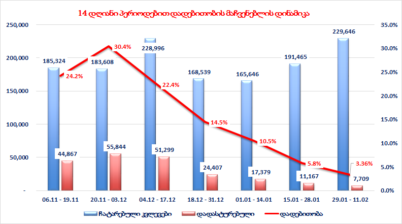 - 11 თებერვალი 16.270 ნიმუში. (საშუალოდ დღეში ბოლო ერთი თვის მანძილზე 15.067