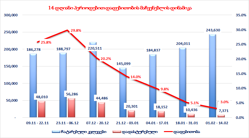 1.02-14.02 – 14 დღიანი მონაკვეთი: ახალი შემთხვევა- 7 371; გამოჯანმრთელდა