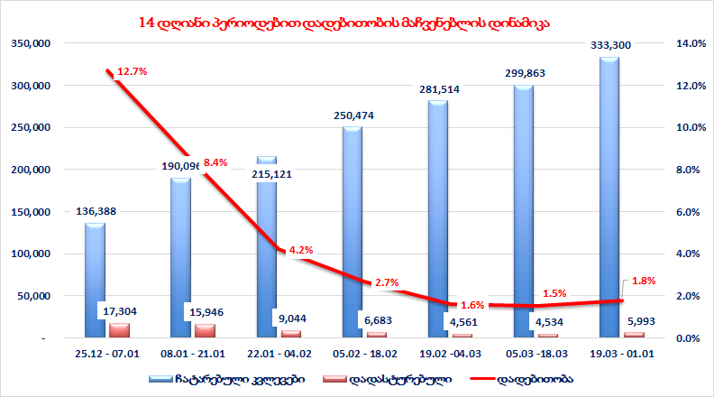 აპრილის დადებითობის მაჩვენებელი - 2.15 %