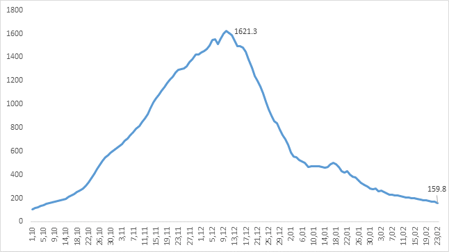 7 დღიანი დადებითობის მაჩვენებელი - 2.3 %