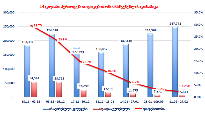 14-27 იანვრის განმავლობაში საშუალოდ დღეში აღებული იქნა 13.383 საკვლევი ნიმუში,