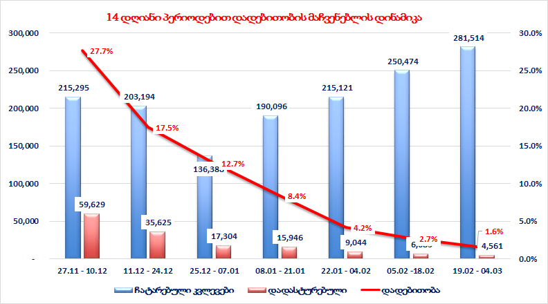 - 4 მარტი 20.108 ნიმუში. (საშუალოდ დღეში ბოლო ერთი თვის მანძილზე 18.847