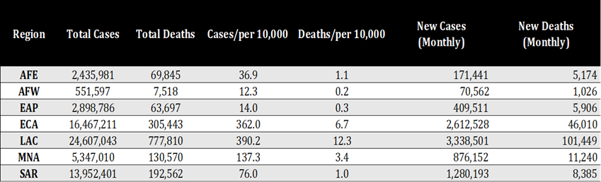 Source: The case and death data is collected from WHO situation reports and population data is from World Development Indicators (World Bank Data). Only IDA and IBRD countries included.