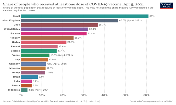 Countries that are not reporting data are not included. (As of April 1, 2021).