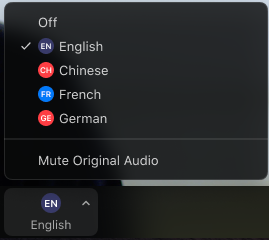 (Optional) To hear the interpreted language only, click Mute Original Audio