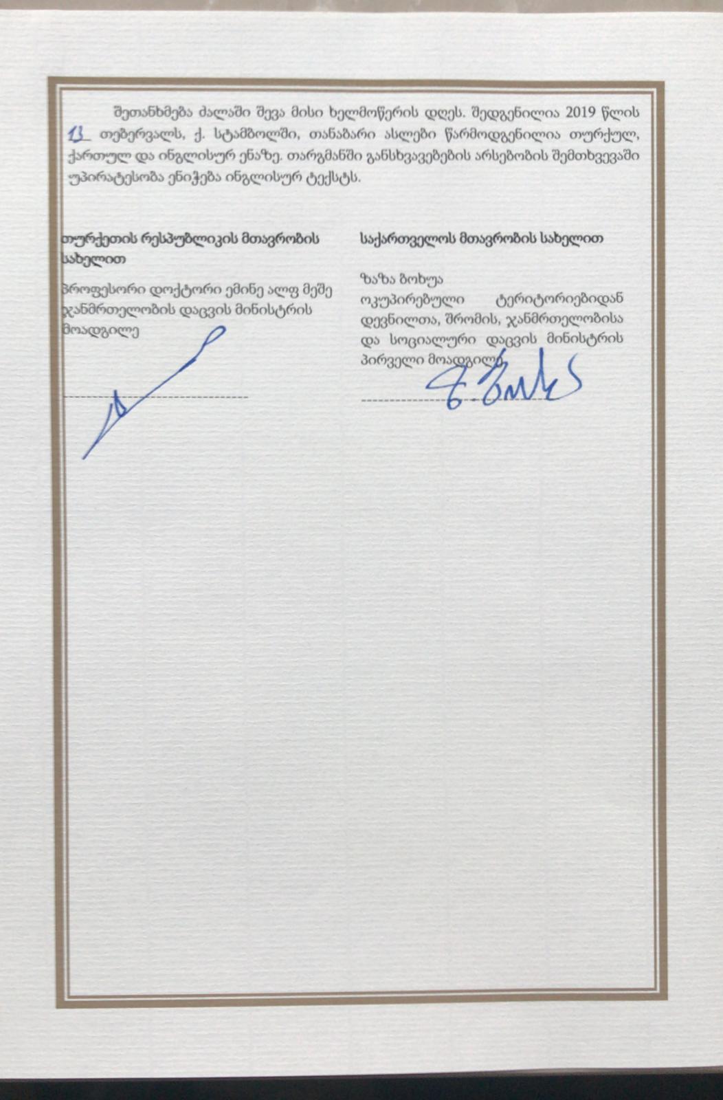 We consider that if the agreement is finalized as soon as possible, the agreement can be signed during the Istanbul visit of H.E. Zaza Bokhua, Deputy Minister of Internally Displaced Persons from the Occupied Territories, Labour, Health and Social Affairs on 14 March 2019 in İstanbul.