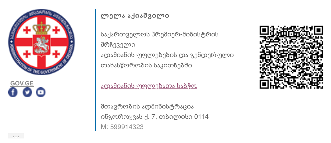 | To : | ntsatsiashvili@mia.gov.ge; tbarkalaia@moh.gov.ge; edgebuadze@mes.gov.ge; m.giorgobiani@mrdi.gov.ge; giorgi.kakauridze@mof.ge; Khatia.Tsilosani@mepa.gov.ge; rbregadze@mod.gov.ge; tkitiashvili@mes.gov.ge; glordkipanidze@justice.gov.ge; tgabunia@moh.gov.ge; emikabadze@moesd.gov.ge; l.gigauri@smr.gov.ge; mmaghlapheridze@moh.gov.ge; Nmerebashvili@pog.gov.ge; gtodradze@geostat.ge; Kh.totladze@mfa.gov.ge; Sozar Subari <ssubari@geo.gov.ge>; EKardava@csb.gov.ge; eskhiladze@ombudsman.ge; Nino.kadagidze@supremecourt.ge; mjajanidze@parliament.ge; r.kuprashvili@legalaid.ge |