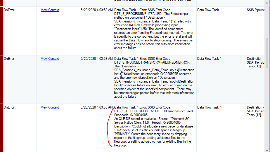 PRIMARY filegroup-ში მეხსიერება არ ეყო.