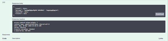 {"result":false,"message":"არასწორი ხელოვნური კოდი","objectID":null,"results":null}