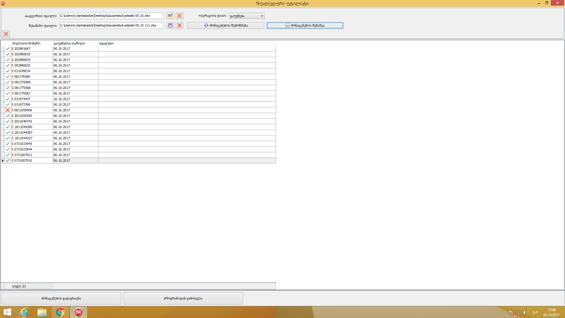 დღეს გაუქმებული 21 პოლისიდან პროგრამამ 1 პოლისზე დასვა წითელი იქსი, თუმცა პორტალზე რომ გადავამოწმე ყველა პოლისი გაუქმებულია