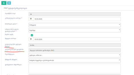 ამიტომ, როდესაც გამოუშვებთ მონაცემებს სერვისით, ციტოლოგიური კვლევის შედეგი და კოლპოსკოპიური დიაგნოზი (თუკი კოლპოსკოპიაც ჩატარდება) უნდა გამოუშვათ როგორც მეორე და მესამე, ისე პირველ საფეხურზე შესაბამის ველში.