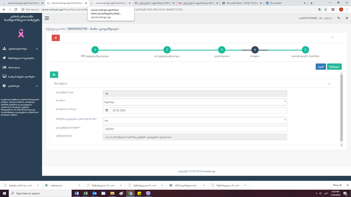 პათოლოგიური რეპორტის ატვირთვა არ ხდებოდა ამ პროგრამიდან, მე დავამეტე, მაგრამ ატვირთვის დროს აბრუნებდა შეცდომას.