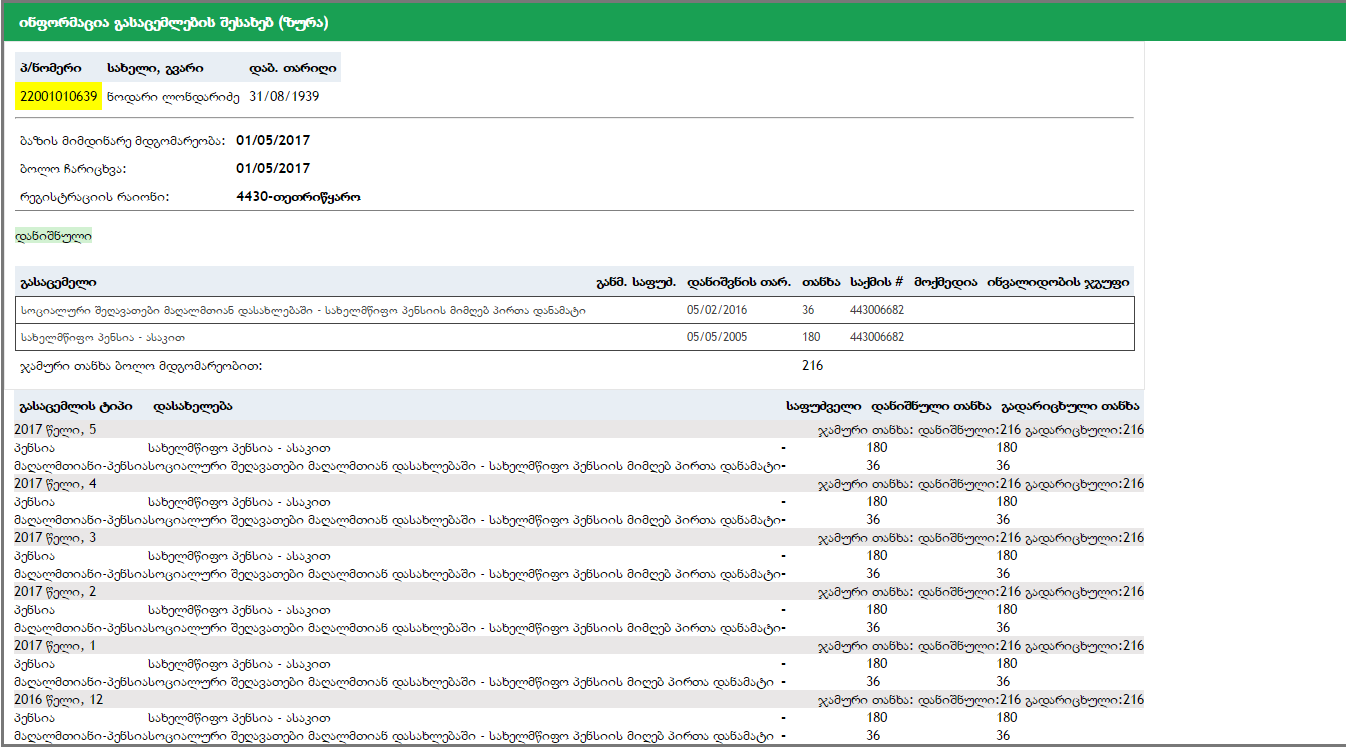 გიგზავნით სახ. გასაცემლის სერვისით დაბრუნებულ მონაცემების ნიმუშს: